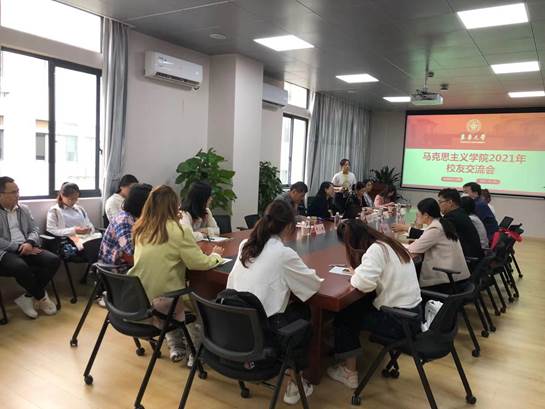 10月16日,在东华大学70周年华诞到来之际,马克思主义学院校友座谈会在1号学院楼424会议室举行,黄寅跃、张晓飞、史鑫茹、马文婷、曹思等校友代表参会。学院党总支书记戴叶萍、院长王治东、副院长陈向义、办公室主任曹小玲出席,专职辅导员于小越和在校生代表参加会议。
