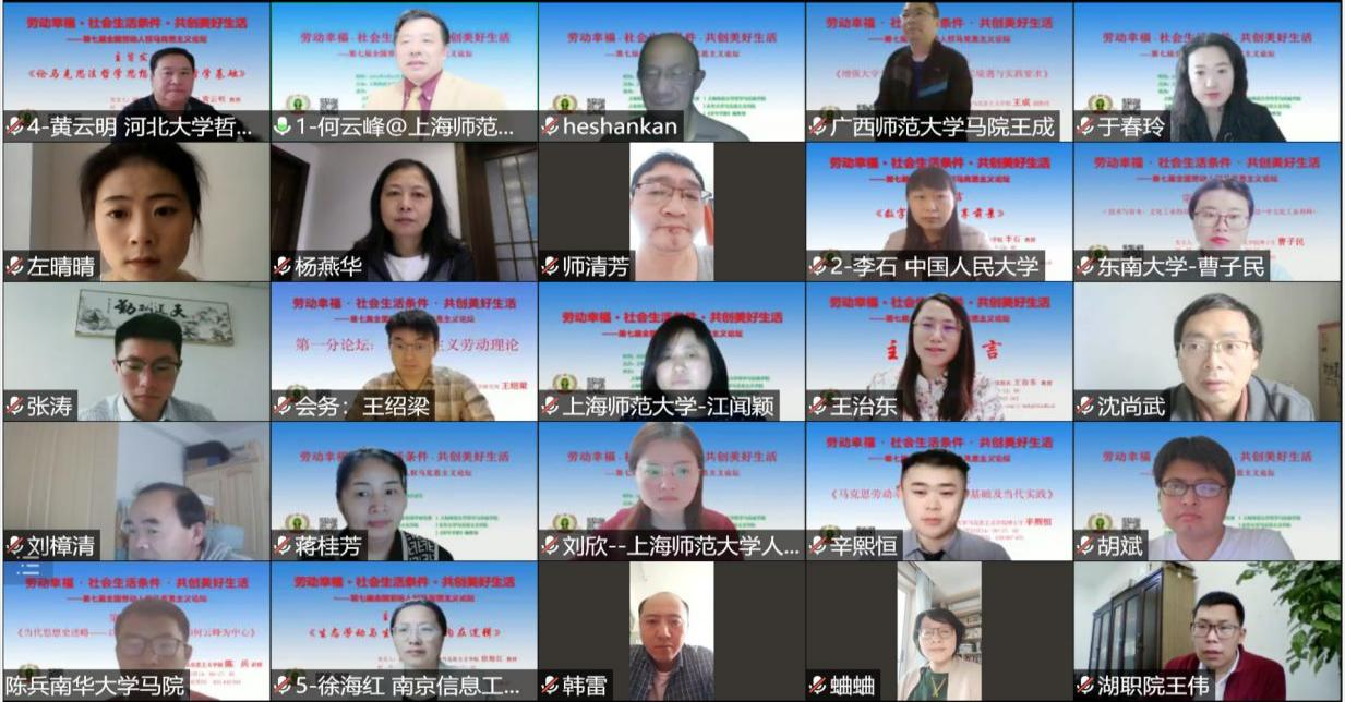 4月23日,由上海师范大学知识与价值科学研究所主办,东华大学马克思主义学院、上海师范大学哲学与法政学院、上海师范大学马克思主义学院、上海师范大学期刊社、《青年学报》编辑部等共同承办的“劳动幸福·社会生活条件·共创美好生活”——第七届全国劳动人权马克思主义论坛顺利举行。此次论坛在线上进行,来自全国各地400余名专家学者共聚“云端”。我院院长王治东教授与学院部分教师参会。