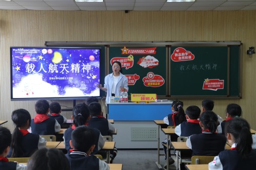 围绕着“载人航天精神”这一主题,一幕幕历史变革在眼前呈现,一声声激动人心的发射倒计时呐喊在耳畔响起,一位位先进榜样从电视新闻中走到孩子们的心中。周若洢同学说:“马克思主义学院的‘大姐姐’用生动易懂的话语为我们讲述了新中国航天发展史,我明白了每一个人都是祖国的建设者,我们要向航天英雄们学习,能吃苦、快成长。邓清明叔叔尤其让我印象深刻,他是一位‘备份’宇航员,在准备了25年后终于追梦成功。飞天梦是一代代航天人乃至全体中国人共同的梦,今天的课让我感动不已。”三(5)中队辅导员赵向红说:“爱国教育不能少,可是想要讲好、讲到孩子们的心里却很难。这次送课进校园,确实解决了辅导员老师们的难题。马院的研究生们充分运用自己的专业理论知识,制作适合中小学生的生动课件,深入浅出地讲述载人航天精神,激发了少年儿童坚定投身强国伟业的伟大志向,非常有意义。”
