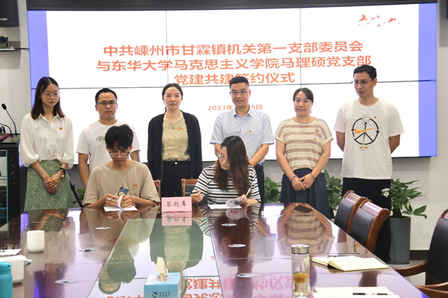 为深入开展学习贯彻习近平新时代中国特色社会主义思想主题教育,进一步学深悟透习近平新时代中国特色社会主义思想,体悟党的创新理论的真理力量和实践伟力,7月18日上午,马克思主义学院马理硕党支部赴浙江绍兴嵊州市,与甘霖镇机关第一支部签署合作共建协议。学院党委书记戴叶萍、甘霖镇党委副书记楼利洪,马理硕支部成员和甘霖镇党建办负责人等参会。