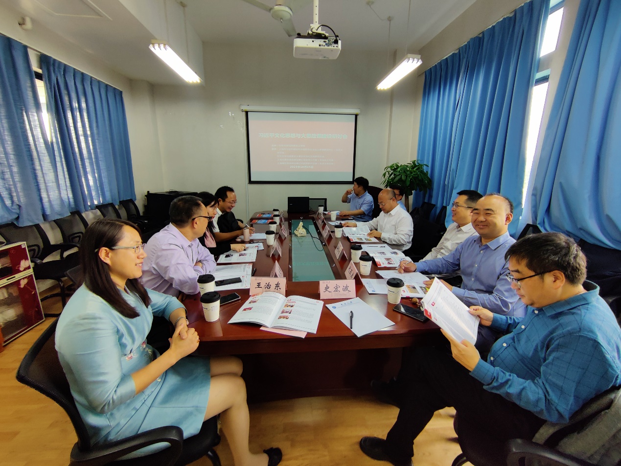 为深入学习贯彻习近平文化思想,提高大思政课的教学质量和水平,马克思主义学院于10月15日下午在1号学院楼334会议室举办了习近平文化思想与大思政课建设学术研讨会。中山大学马克思主义学院院长林进平教授、山东大学马克思主义学院院长张士海教授做主旨发言,主旨发言由《马克思主义理论学科研究》编辑部主任、编审蒋旭东主持。主旨发言后,浙江大学马克思主义学院副院长代玉启教授、上海师范大学马克思主义学院院长张志丹教授、上海理工大学马克思主义学院院长金瑶梅教授、华东政法大学马克思主义学院院长赵庆寺教授、华东师范大学马克思主义学院副院长赵勇教授、同济大学马克思主义学院副院长刘勇教授、上海交通大学史宏波教授、华东理工大学马克思主义学院副院长徐国民教授参与交流发言。会议由马克思主义学院院长王治东主持。