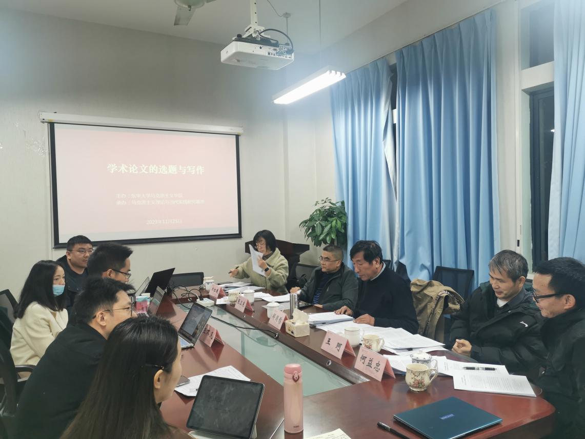 2023年11月25日下午,“学术论文的选题与写作”指导会在学院楼334室举行。应学院邀请,《高等学校文科学术文摘》编辑、上海师范大学地域研究所邹国慰副研究员、《江汉论坛》责任编辑张卫东研究员、《中州学刊》编辑王珂、《安徽史学》责任编辑郝红暖参加了此次指导会。华东政法大学马克思主义学院党委书记何益忠教授受邀出席。本次会议由东华大学马克思主义学院主办,马克思主义理论与当代实践研究基地承办。会议由学院副院长王不凡主持。学院部分青年教师参会。