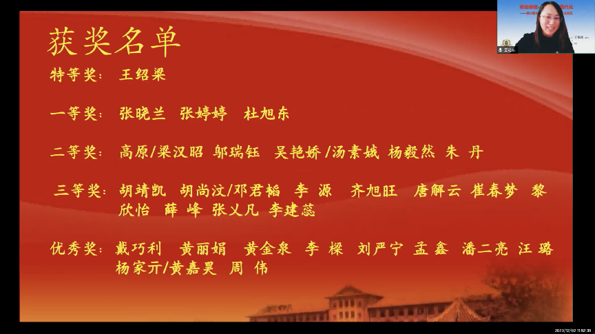 主旨报告结束后,论坛进行了青年优秀原创论文获奖颁奖仪式。我院院长王治东教授代表组委会宣读评选的程序和标准,并宣布获奖名单。本届论坛收到论文150余篇,经专家组匿名评审,评选出特等奖1名、一等奖3名、二等奖5名、三等奖10名、优秀奖10名。我院张乂凡老师的论文获评三等奖,吴荣老师和毛轶琴硕士生的论文被论坛收录。