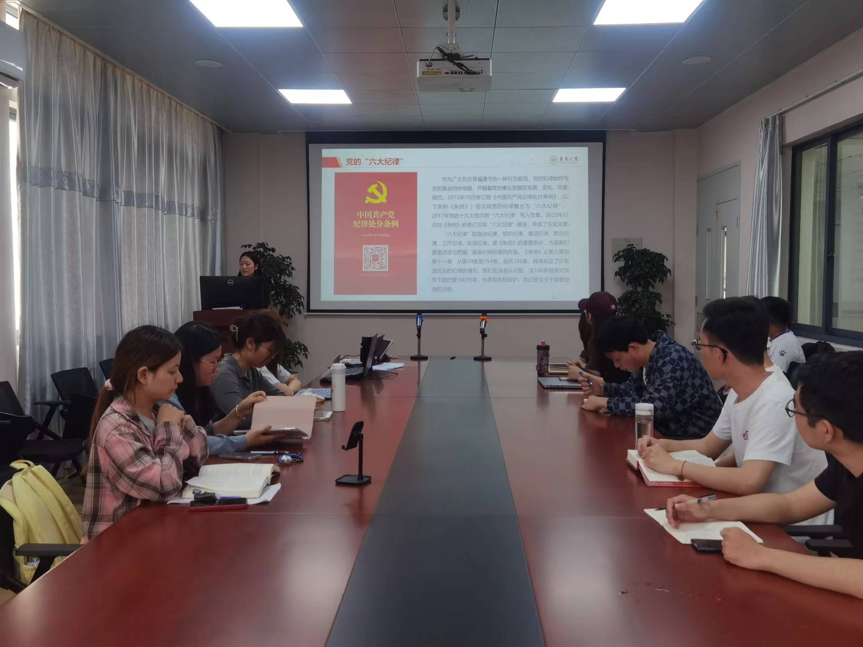 马克思主义学院马理硕党支部认真开展党纪学习教育,聚焦学习新修订的《中国共产党纪律处分条例》,认真谋划安排、精心组织实施、坚持原原本本学、知行合一学,引导支部党员学纪、知纪、明纪、守纪。