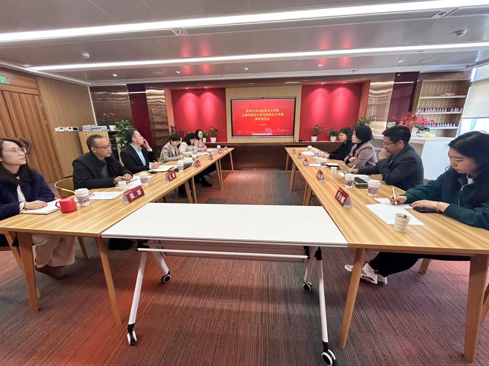 调研团队首先参观了上海中医药大学马克思主义学院的“习语中医药”主题教室,随后在会议室举行了座谈会。会上王鑫对东华大学调研团队的到来表示热烈欢迎,并从学科建设、思政课教育教学、师资队伍、“杏马远志计划”党建品牌建设等方面系统介绍了学院的发展现状。林惠英介绍了东华大学马克思主义学院的发展概况及建设思路。王芳指出,希望双方能够进一步深化合作,特别是在青年教师科研能力提升方面建立常态化互动机制,实现优势互补、共同发展。