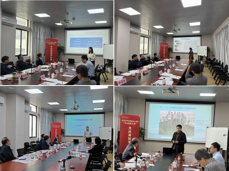 为深入贯彻落实立德树人根本任务,推进思政课改革创新,加强思政课教师队伍建设,深化马克思主义学院结对共建工作。4月22日,学院举办了主题为“大手牵小手·教学共提升”的思政课教学比赛,比赛邀请了我院结对共建单位上海戏剧学院马克思主义学院和上海视觉艺术学院马克思主义学院的思政课老师共同参加。比赛由东华大学马克思主义学院党委书记林惠英主持。