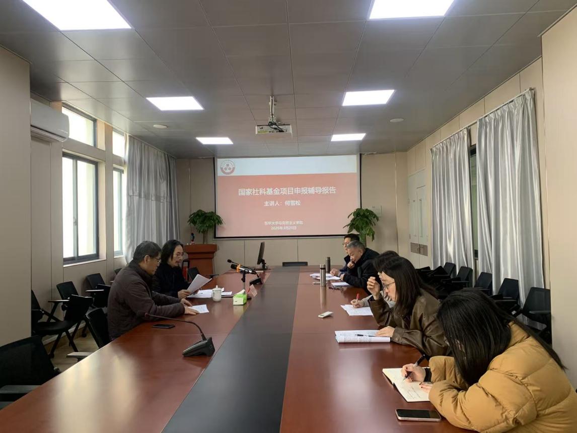 为扎实推进2026年度国家社科基金项目申报工作,3月20日上午,马克思主义学院在1号学院楼424室举办国家社科基金项目申报辅导报告会。会议邀请华东理工大学社会与公共管理学院院长、博士生导师何雪松教授作专门辅导。会议由副院长陈向义教授主持,学院拟申报基金项目的教师参会交流。