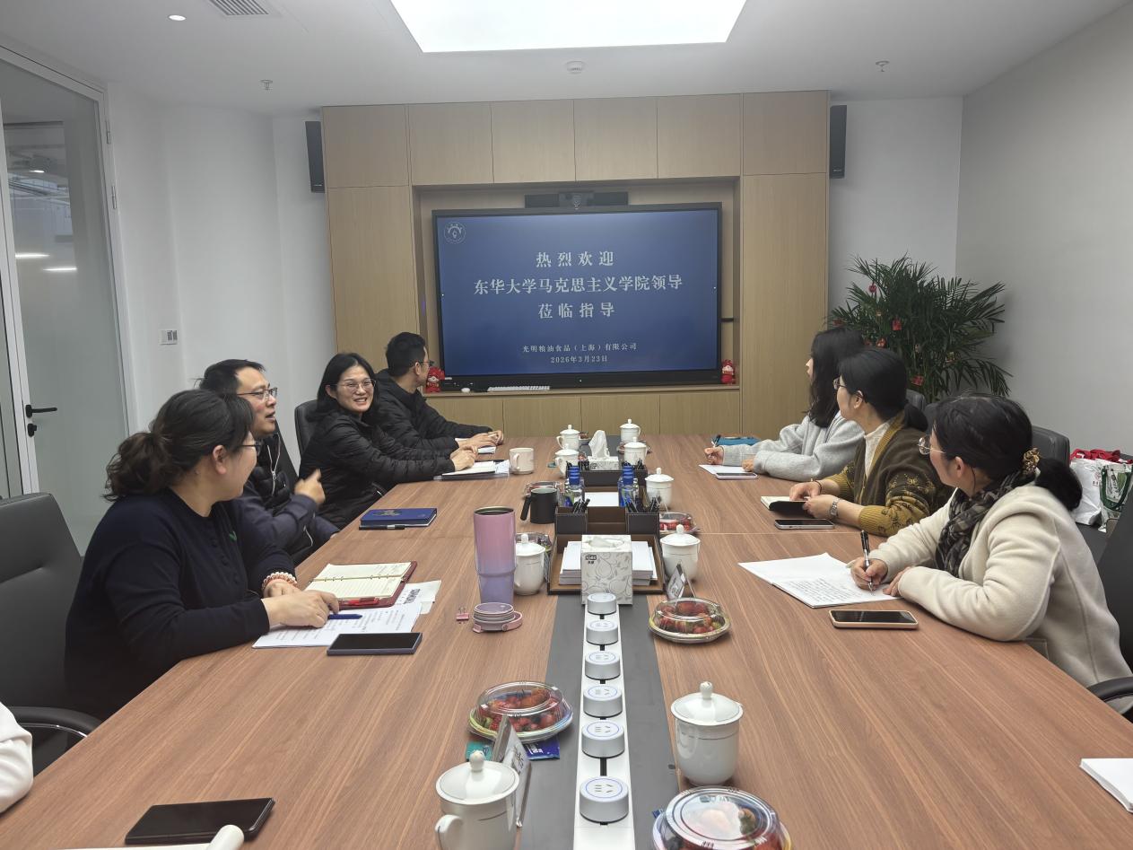 3月23日,东华大学马克思主义学院与光明粮油食品(上海)有限公司合作交流会在光明粮油食品有限公司会议室举行。光明粮油食品(上海)有限公司党委书记、副总经理丁劭樑,党委副书记、党委工作部部长袁昉,纪委书记、工会主席杨国英,人力资源部乐剑,人力资源部仇煜梁,东华大学马克思主义学院党委书记林惠英,党委副书记兼副院长曹小玲,团委书记、专职辅导员于小越参加本次会议。