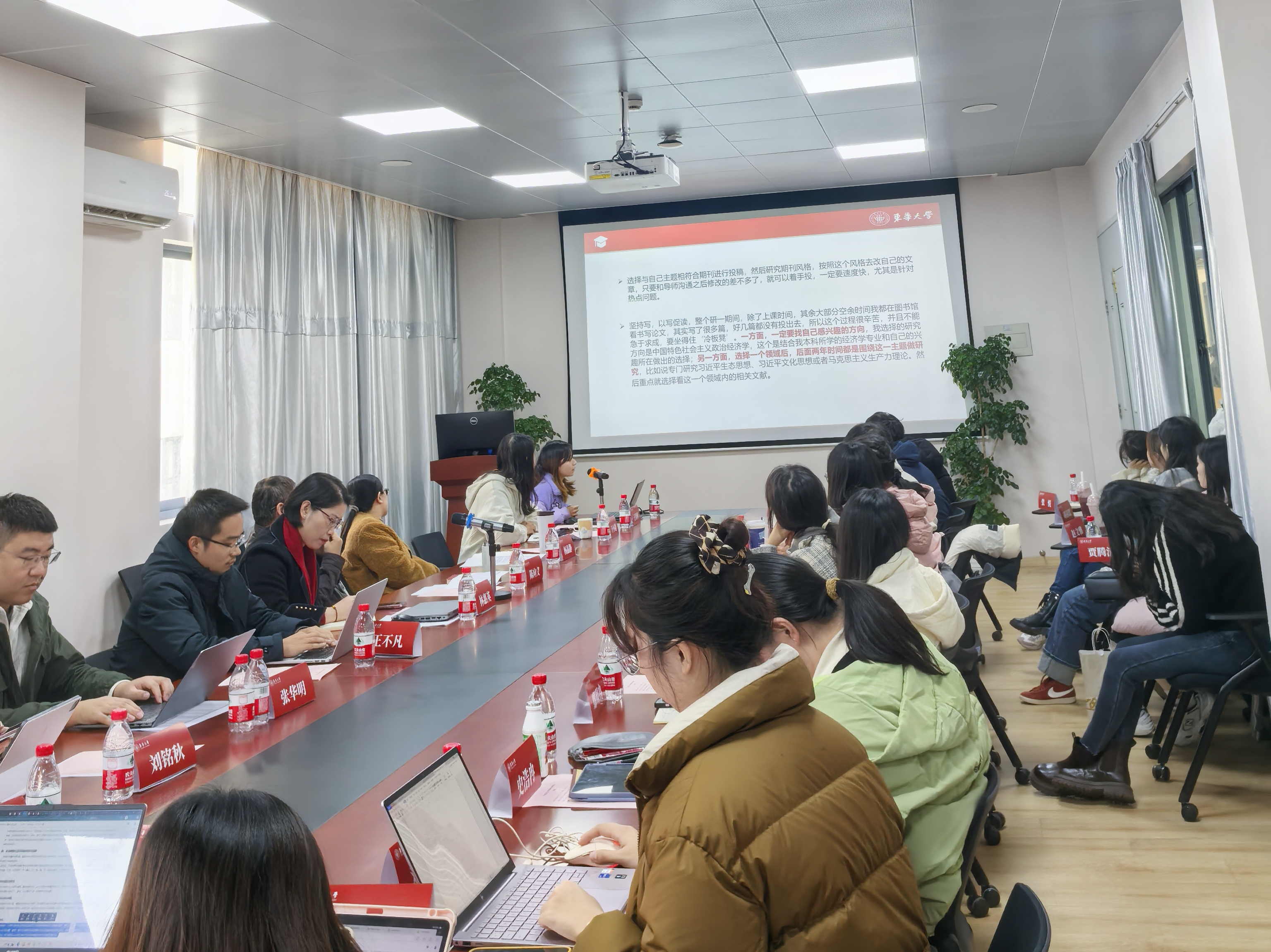 座谈会伊始,2023级研究生代表王诗蓉和张颖分享了学习和发表论文的宝贵经验。王诗蓉围绕“一个点、两种基本能力、一种心态”展开分享;张颖则详细分享了自己在学术论文撰写方面的经验和心得。